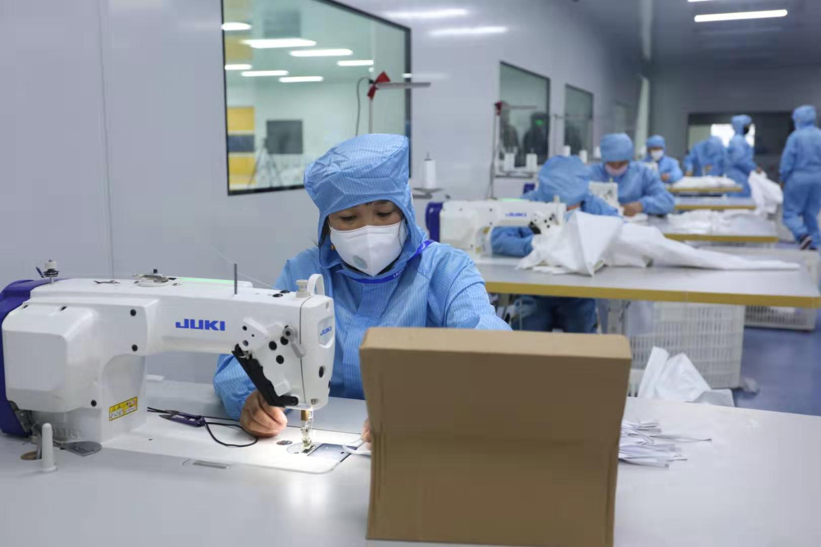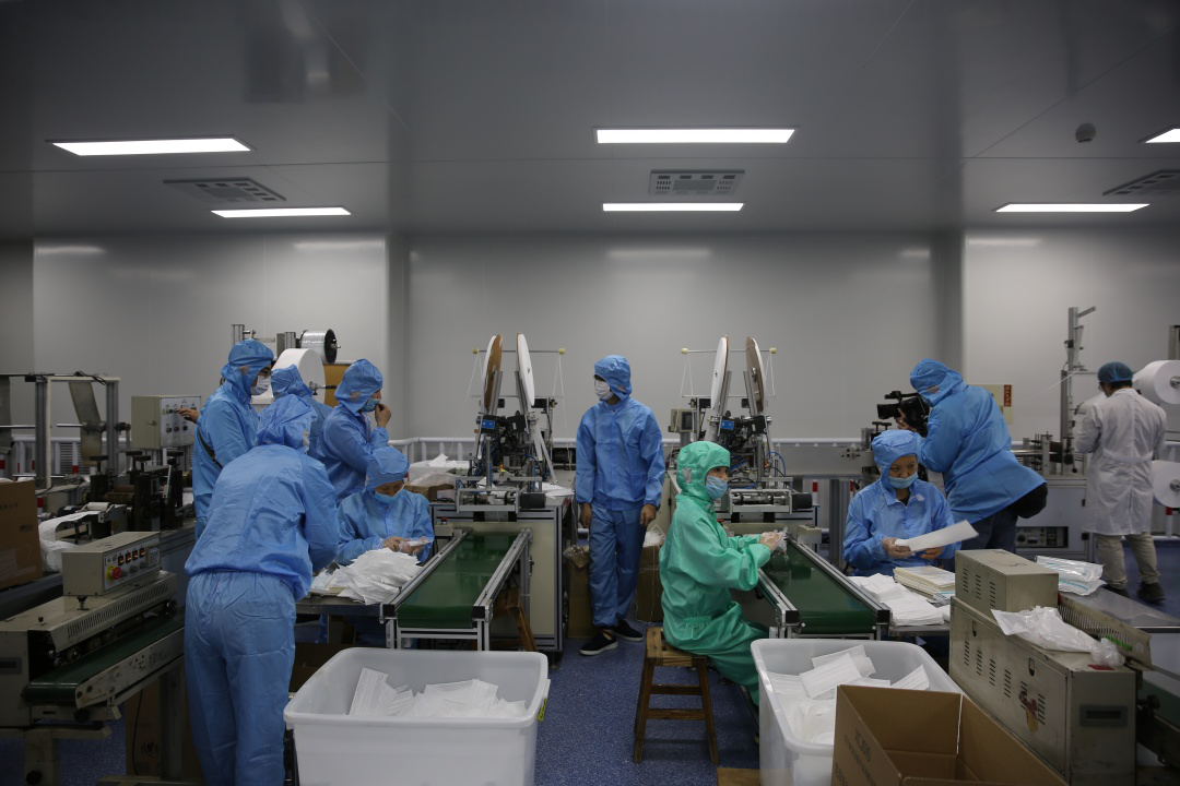 2月15日,尊龙时凯集团新引进的口罩生产线全力开动,正式出产医用口罩产品。据悉,该批5条生产线满负荷运转后,日产口罩约50万片。此前的2月4日,尊龙时凯集团联合晋江兴德织造有限公司启动了防护服生产,目前日均产能可达1000件。